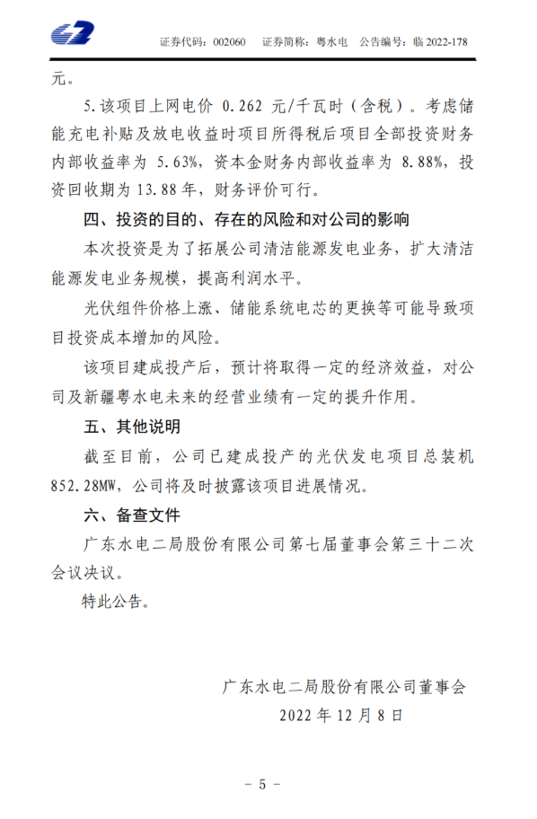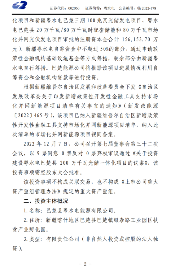 此項(xiàng)目已納入新疆維吾爾自治區(qū)新增政策性開發(fā)性金融工具支持市場(chǎng)化并網(wǎng)新能源項(xiàng)目清單,納入此次清單的市場(chǎng)化并網(wǎng)新能源項(xiàng)目視同備案。公告稱,截至目前,粵水電已建成投產(chǎn)的光伏發(fā)電項(xiàng)目總裝機(jī)852.28MW。
