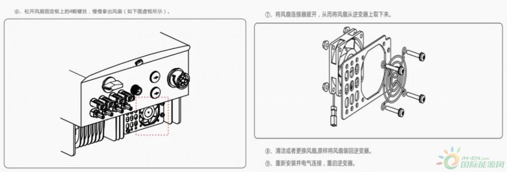 光伏逆變器普遍安裝于戶外,受日曬、雨淋、沙塵或高溫等自然因素影響,因此,光伏逆變器的散熱性能成了影響逆變器穩定可靠運行的主要因素之一。逆變器的散熱方式有兩種:一是采用自然散熱,即依靠自身散熱器散熱,二是輔以散熱風扇,依靠外力強制冷卻。正值高溫酷暑,良好的散熱性能是逆變器高效發電、可靠運行的關鍵,但置于外部環境中的逆變器有許多因素會影響散熱風扇運行,因此定期維護有利于逆變器的正常運行。本期小課堂為大家分享逆變器散熱風扇維護相關問題。
