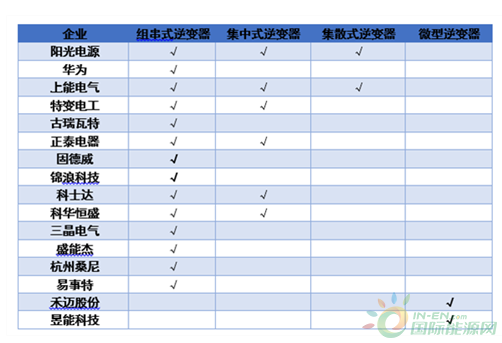 從以上各類技術路線看,目前覆蓋范圍最全的是陽光電源,陽光電源除了微型逆變器其他基本全覆蓋,其他企業大部分都只做組串式逆變器。而微型逆變器生產商國內主要是昱能科技和禾邁股份兩家。