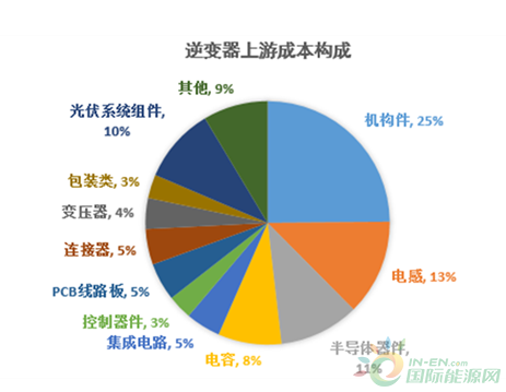 逆變器上游主要是原材料,包括機構件、電子元器件和輔助材料。機構件包括塑膠件、壓鑄件、鈑金件、散熱器等。電子元器件包括功率半導體、集成電路、電感、PCB線路板、電容、連接器等等。在逆變器上游原材料中,半導體器件是核心零件,因為IGBT和MOSFET決定逆變器交直流變化功能的實現。