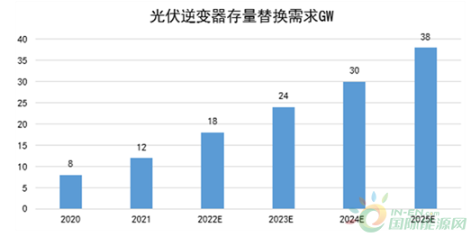 新增光伏逆變器方面,2021年全球光伏新增裝機170GW,預計2025年全球光伏新增裝機有望達到300GW,預計2025年光伏逆變器新增需求加替換需求共338GW。