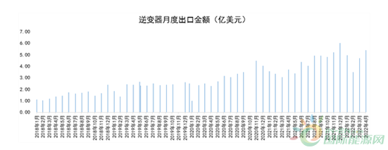 從近期出口數據看,4月逆變器出口5.4億美元,同比增長45.17%;截止到4月累計出口金額18.53億美元,累計同比增長35.35%。