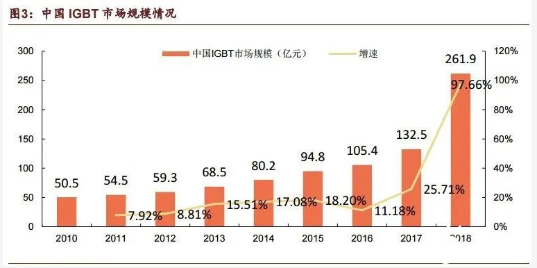 據中金研究咨詢機構預測,到2025年全球光伏逆變器市場規模將增長至1096億元人民幣。按IGBT占逆變器價值量20%來算,2025年全球光伏逆變器用IGBT的市場規模將達到274億元人民幣。