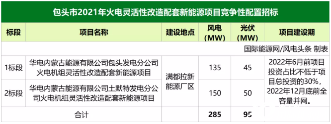 國際能源網/風電頭條(微信號:wind-2005s)獲悉,近日,包頭市發改委發布《包頭市2021年火電靈活性改造配套新能源項目競爭性配置公告》。