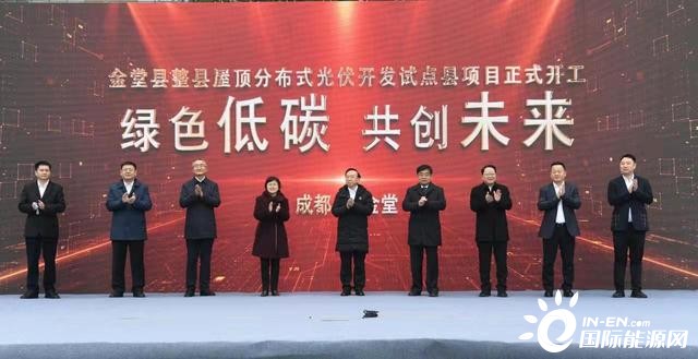 2月10日,金堂縣整縣屋頂分布式光伏開發試點縣項目開工儀式在成阿商務中心舉行,標志著金堂縣整縣屋頂分布式光伏開發試點縣項目正式啟動。成都市委副書記謝瑞武,副市長林楠,市委副秘書長秦代紅,市投促局局長何興軒,市發改委副主任蔣明,市經信局二級巡視員劉幼成,市生態環境局黨組成員、機關黨委書記文雁,金堂縣委書記鐘靜遠,金堂縣委副書記、縣長古建橋出席了開工儀式。